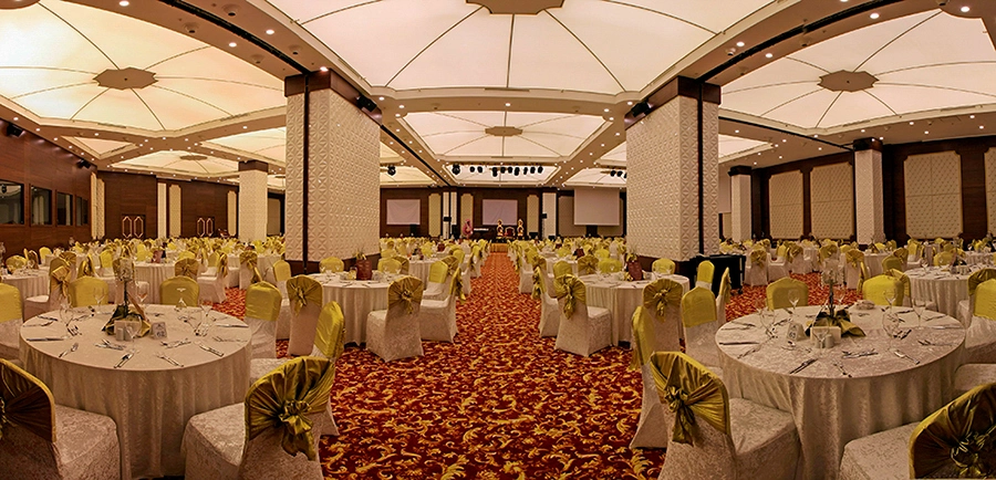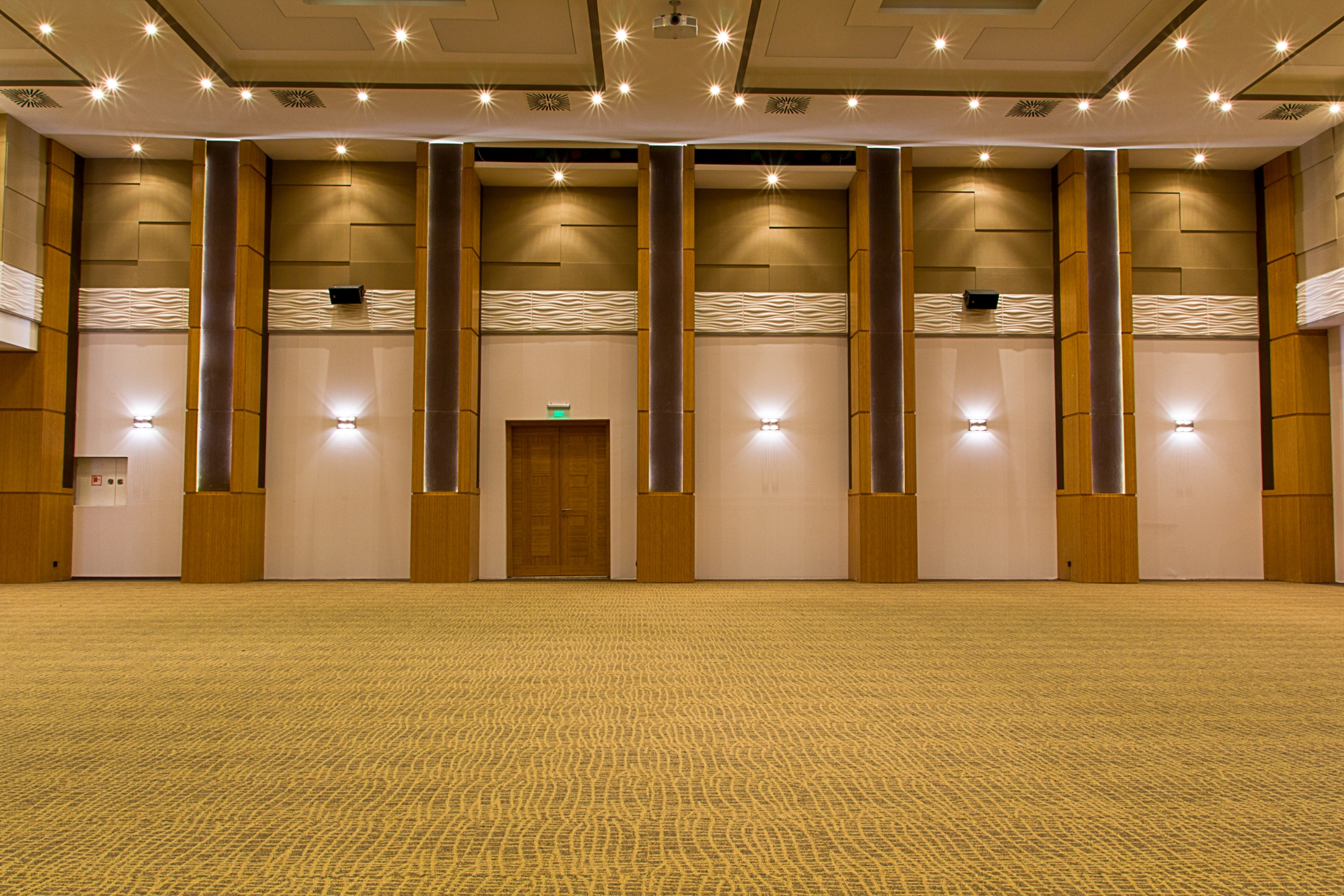 A 900 m² multi-purpose hall within a resort hotel, featuring sliding wall systems that allow flexible use—transforming into two halls and a cinema, or one unified 1,200-seat event space with full acoustic control.