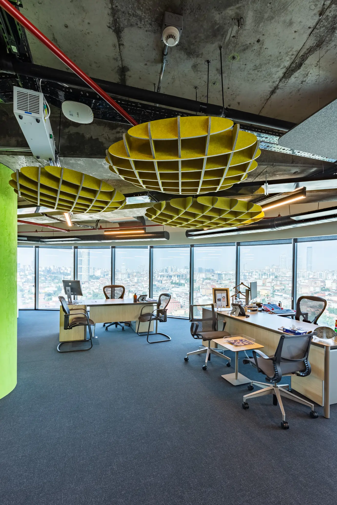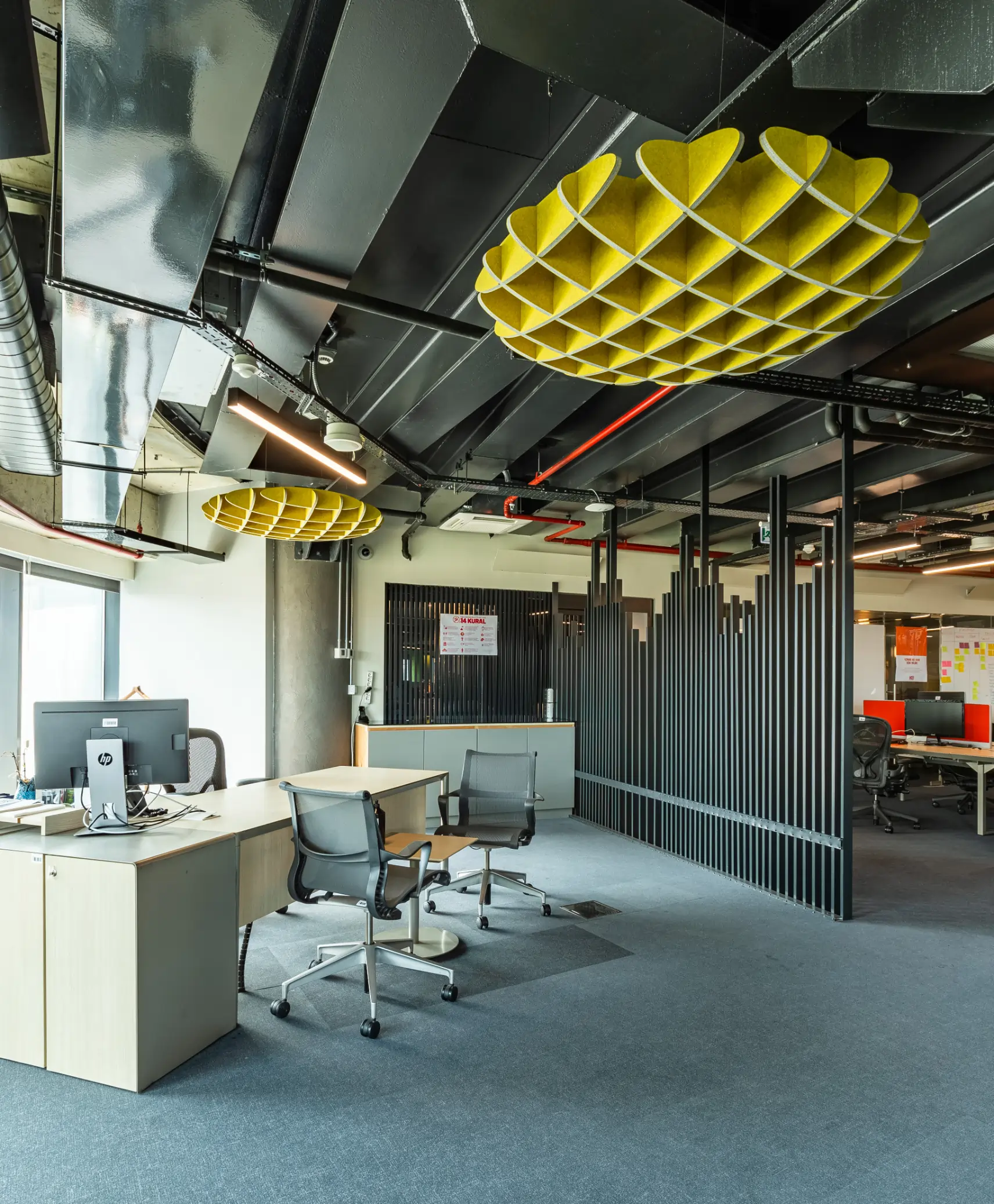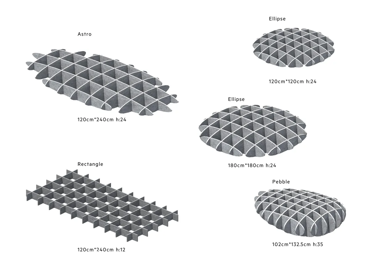 Cloud Models of the Plativity Collection offer acoustic solutions by creating unique modular hanging ceiling solutions. Semi-rigid free-hanging solutions are lightweight and easy to install. Clouds delivers tailor made acoustic solutions with cut out 12mm or 14mm thickness of Plate sheets that offers standart various dimensions.