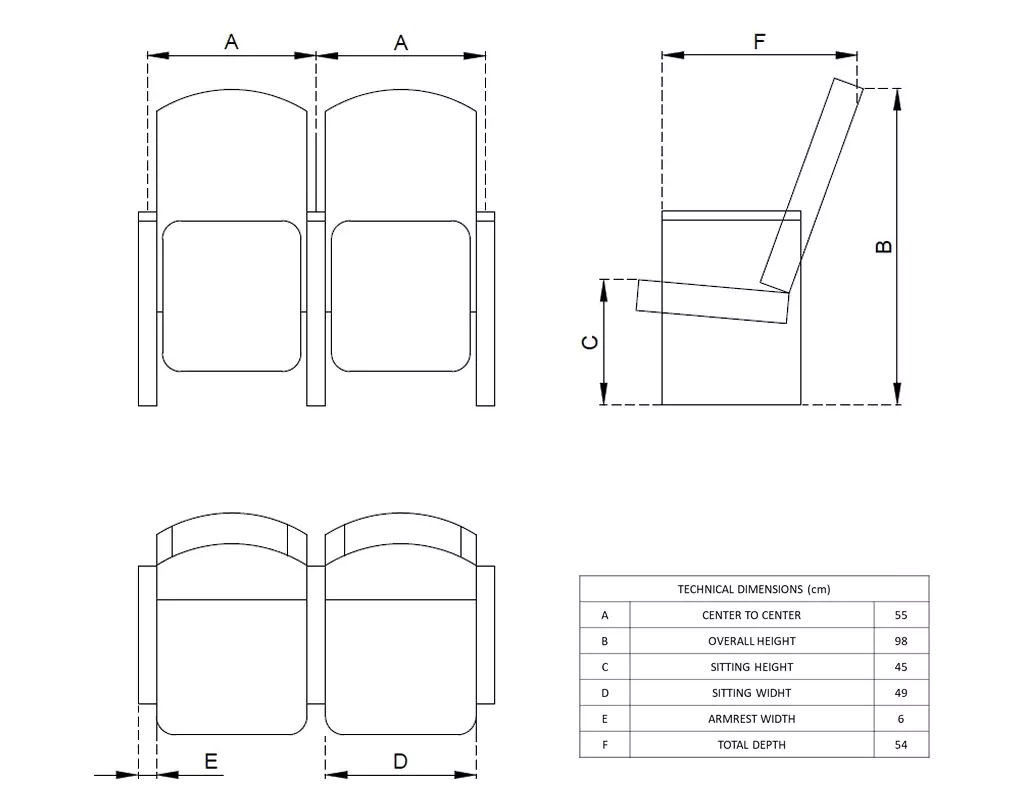 The Conference Seat Opal AP 02 offers an innovative solution for auditoriums and conference halls with its anti-panic writing tablet, which automatically stows away when not in use. The chair features elegantly curved wooden armrests and a stylish, slightly curved backrest for both comfort and sophistication. Its ergonomic design ensures long-lasting support, making it ideal for meetings and presentations. With half-length fabric legs, the Opal AP 02 is a blend of durability, functionality, and sleek aesthetics.