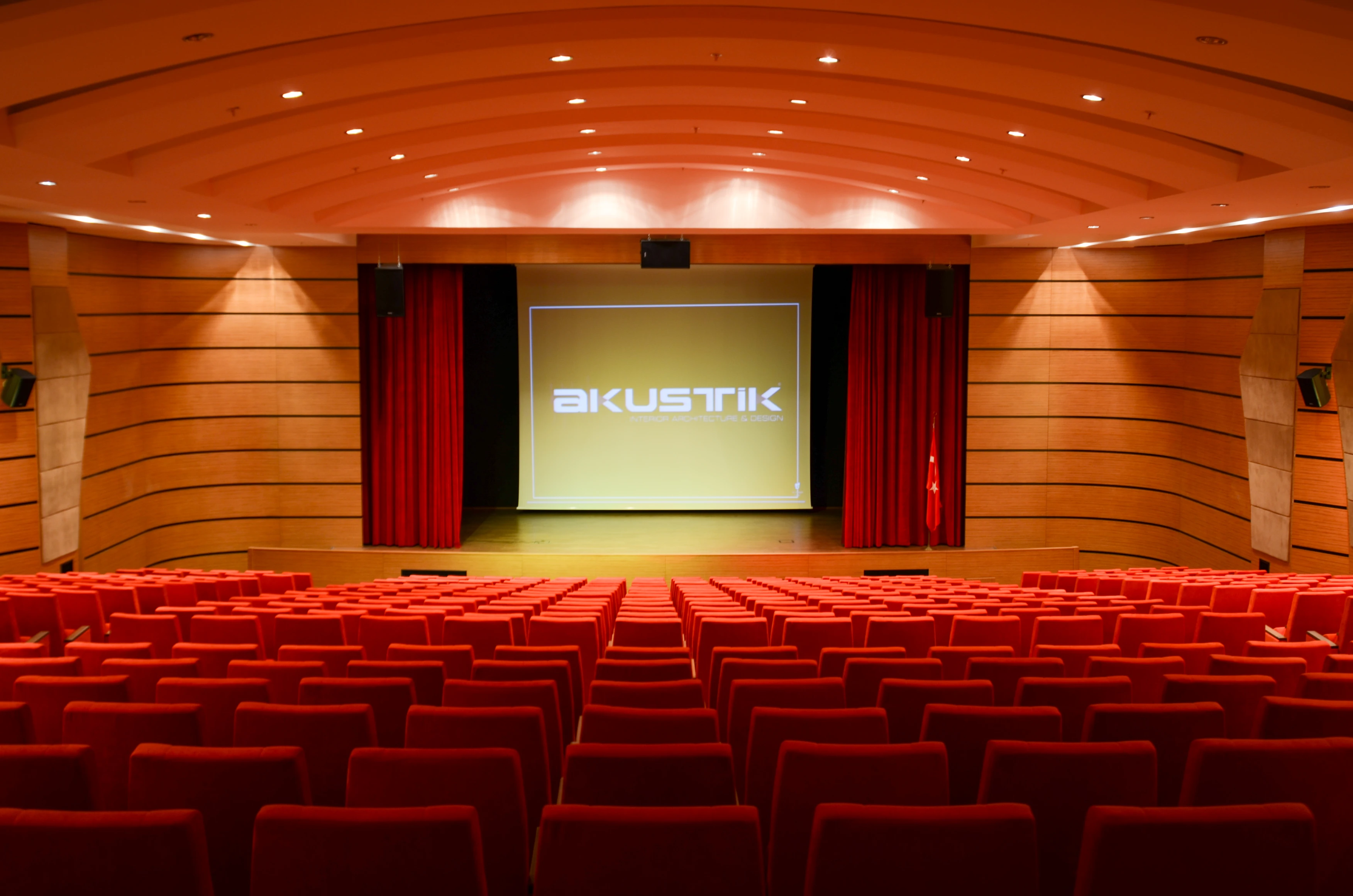 A complete design-build project for a multi-purpose school conference hall, blending architecture and acoustic solutions.
