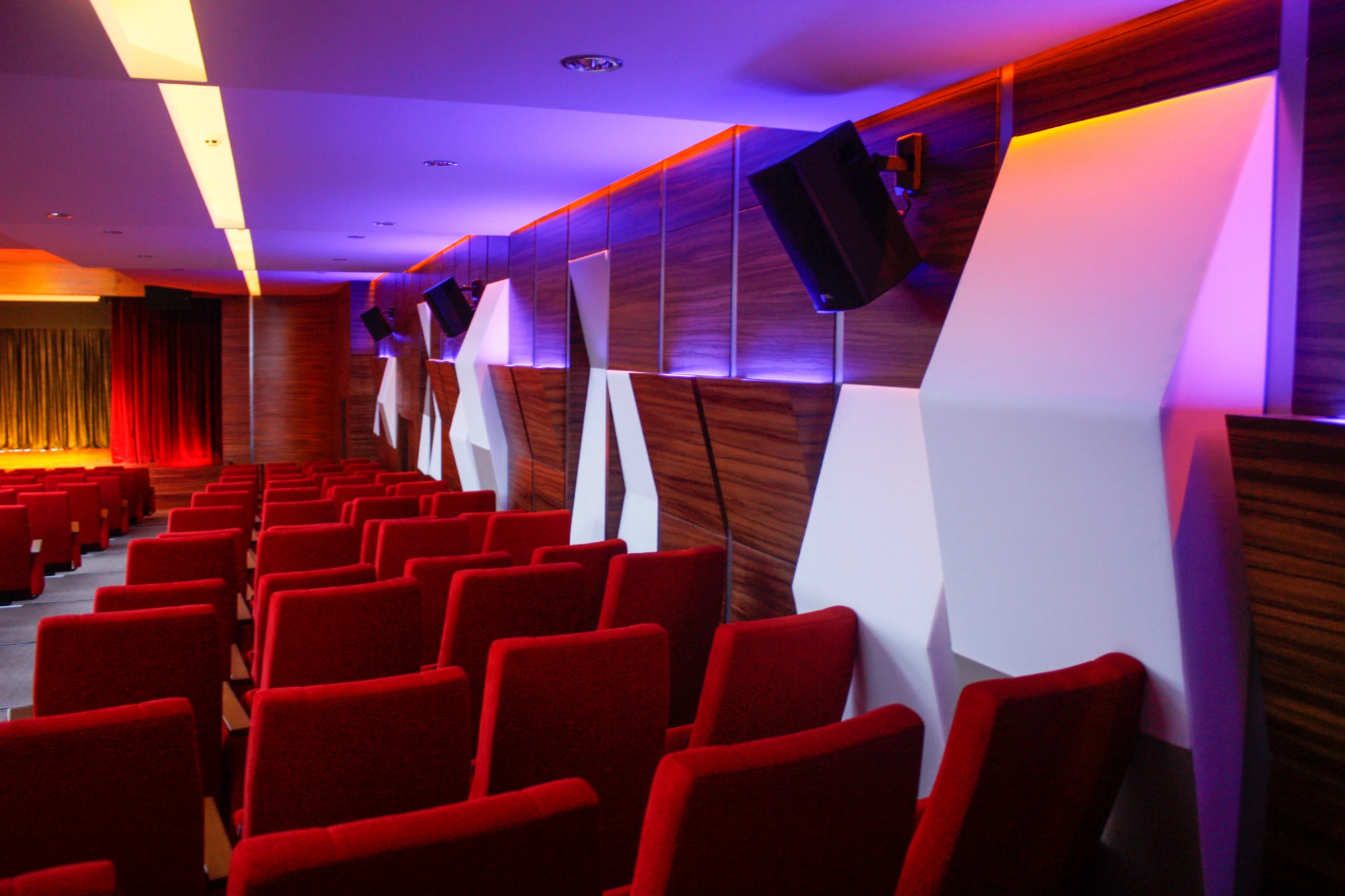 A small-scale conference hall combining practical design with refined acoustic performance, featuring adaptable lighting options that allow users to create different atmospheres.